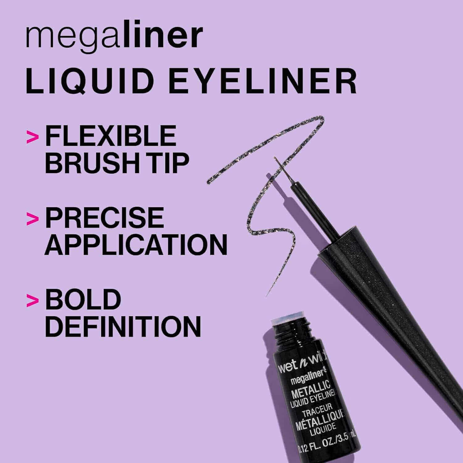 Wet n Wild MegaLiner Liquid Eyeliner – Black Noir delivers intense black color with a smooth, long-lasting formula for precise, quick-dry lines, from natural to bold looks.